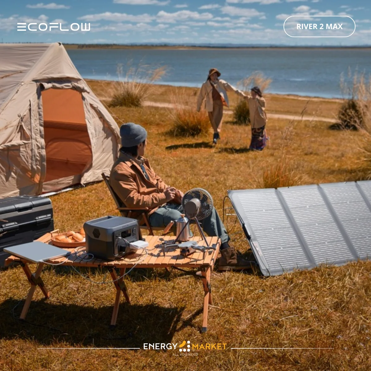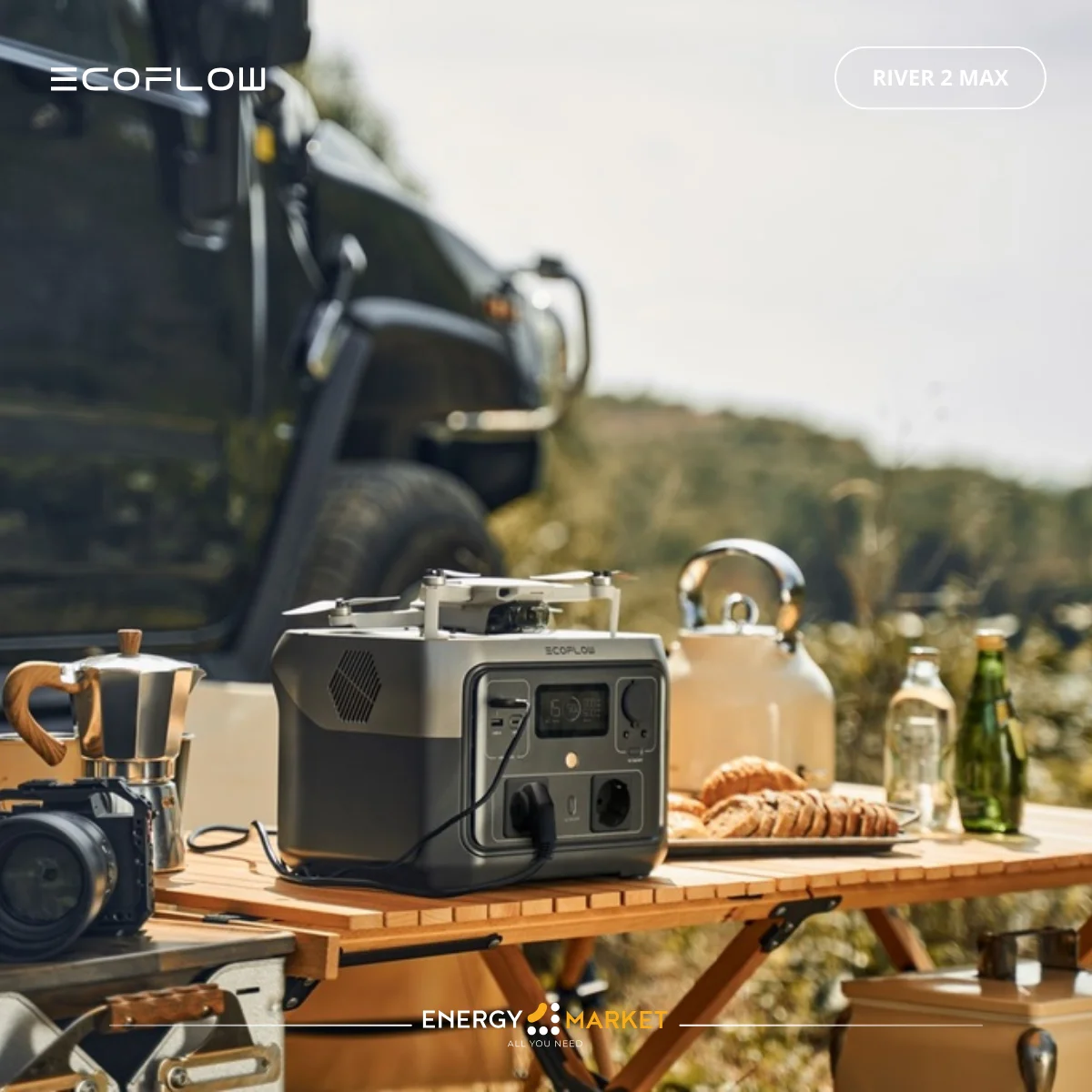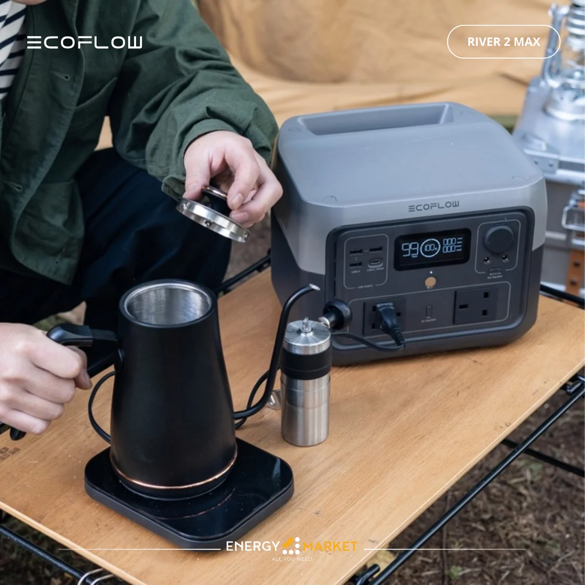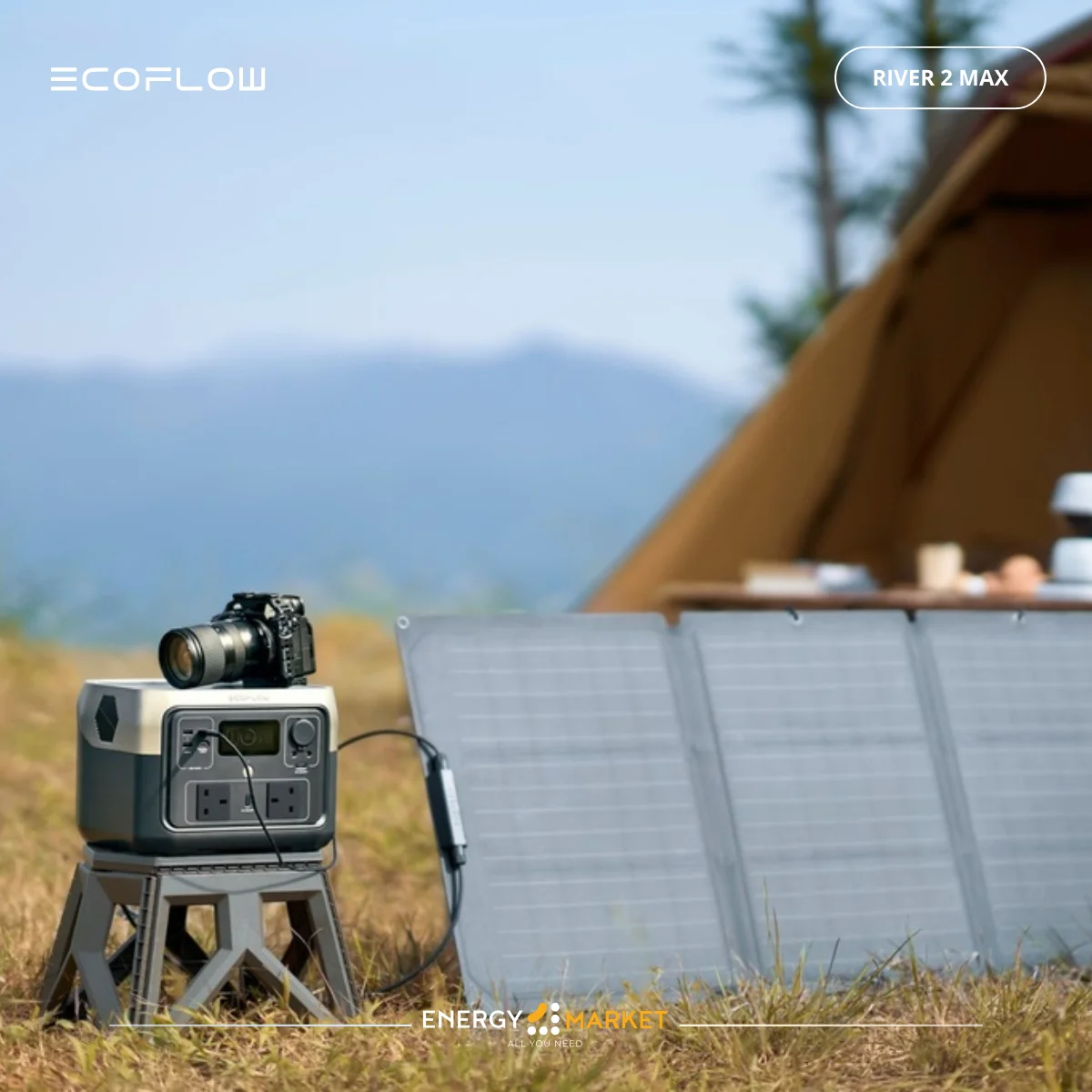 Station d’énergie portable EcoFlow River Max 2 offrant une solution de stockage et d’alimentation mobile puissante, idéale pour l’énergie solaire, les déplacements outdoor ou les besoins d’alimentation d’appoint à la maison.